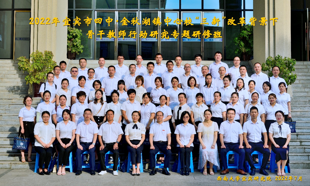 7月16日-20日,宜宾市四中·金秋湖镇中心学校“三新”改革背景下骨干教师行动研究专题研修班在学校举行。两所学校共62名学员参加本次研修。