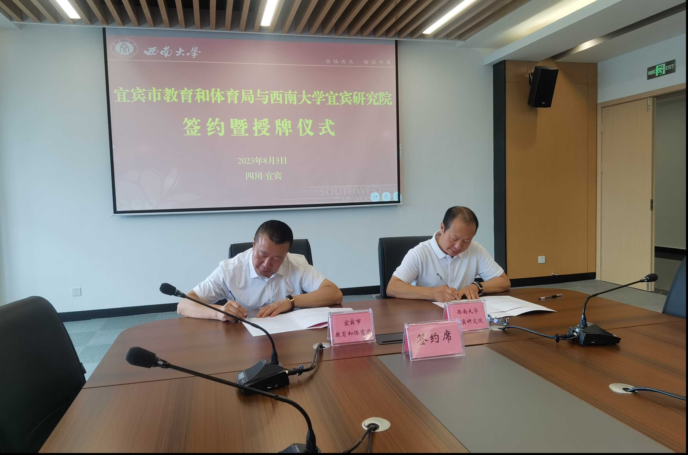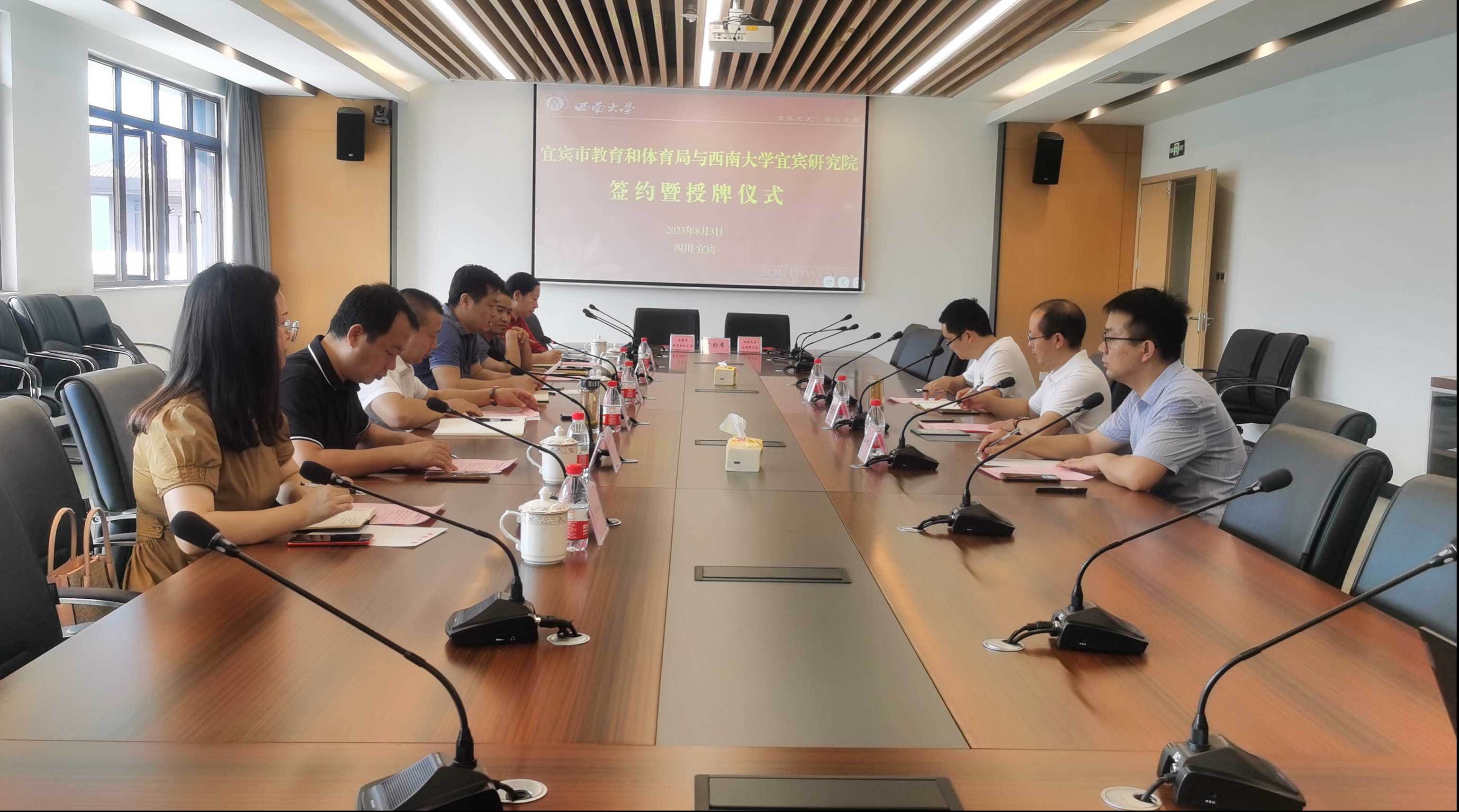 为加强川渝校地合作,推进宜宾基础教育高质量发展,8月3日,宜宾市教育和体育局与PA视讯集团宜宾研究院举行校地合作签约暨授牌仪式。宜宾市教育和体育局党组书记、局长田贵荣,PA视讯集团宜宾研究院直属党支部书记、院长陈金凤参加仪式,宜宾市委教育工委副书记伍绍彬主持会议。