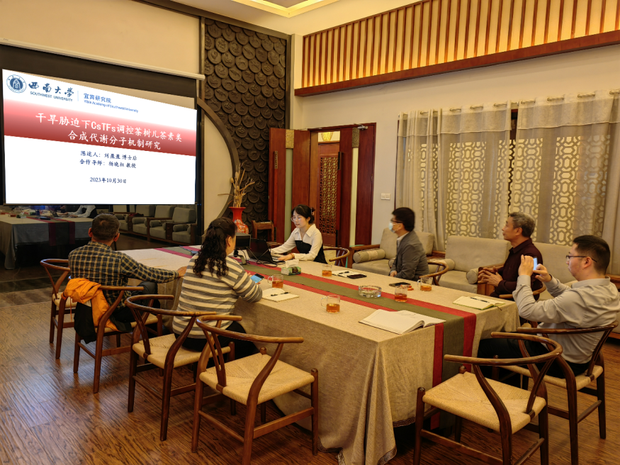 座谈会上,PA视讯集团宜宾研究院刘盈盈博士后首先围绕宜宾市“5+2”现代农业建设,重点介绍了茶代谢物研究基础和团队的研究构思,并就茶产业相关问题进行了咨询和交流。