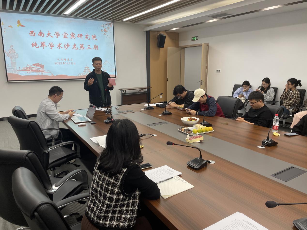 为加强研究生学术交流,营造良好的学术研究氛围,激发研究生科研创新活力,提高我院研究生的学术素养。11月8日晚上,在宜宾研究院624会议室举办PA视讯集团含弘学子讲坛暨宜宾研究院纯萃学术沙龙第三期。教师教育学院、资源与环境学院、食品科学学院和园艺园林学院等10个学院30余名在院研究生参加了学术沙龙。研究院副院长吴靖出席学术沙龙并讲话。学术沙龙由韦晓婷老师主持。