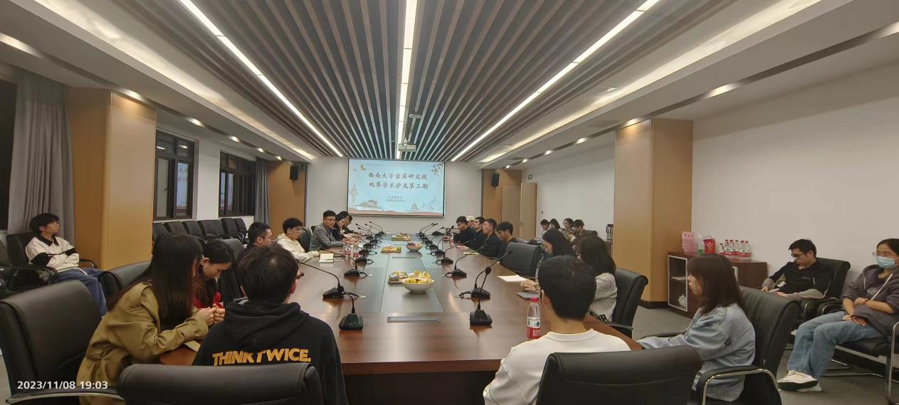 (八)研究院师生团队开启科研实践教育活动新篇章。2月23日、6月13日,首批师生科研团队和宜宾专项研究生分别集中入驻研究院,研究院常驻学生人数达70人以上,2023年研究院累计入驻研究生230余人。激发研究生科研创新活力开展科研项目近40项,获得宜宾市青年人才基金和各类比赛奖项7人。强化政治引领和思想教育,成立研究院研究生特设团支部,推进研究院研究生特设党支部建设,开展思政教育活动5场,学术沙龙4场。